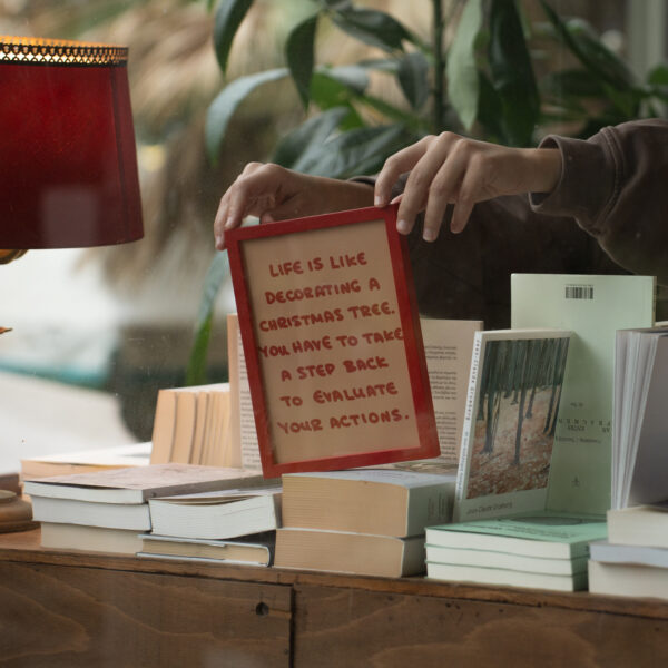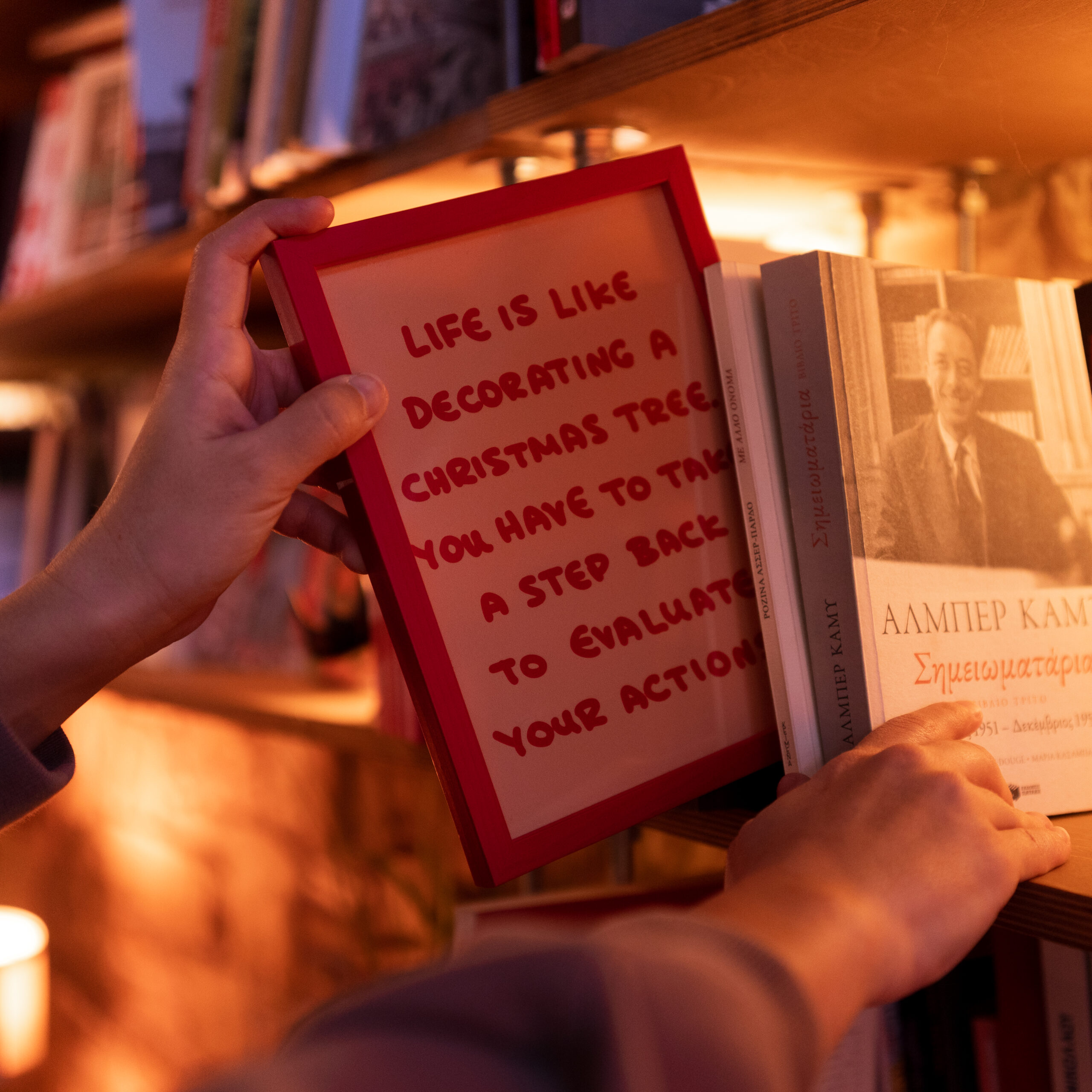 Μετάφρασέ μου το κείμενο «Η ζωή είναι σαν να στολίζεις χριστουγεννιάτικο δέντρο. Πρέπει να κάνεις ένα βήμα πίσω για να αξιολογήσεις τις πράξεις σου».